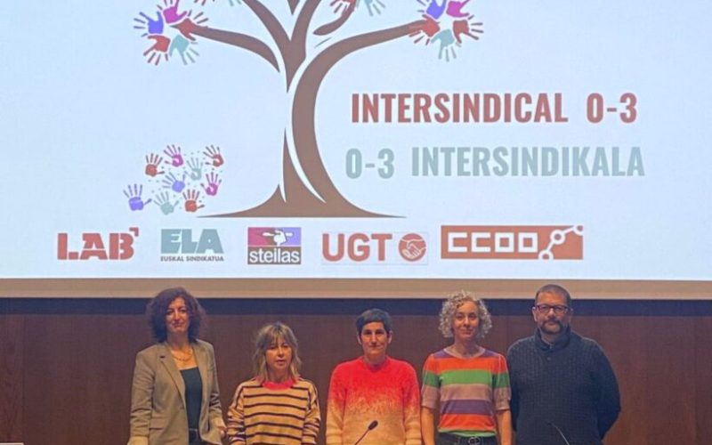 La intersindical del ciclo 0-3, formada por LAB, ELA, STEILAS, UGT y CCOO, queremos presentar hoy nuestras principales reivindicaciones para mejorar la situación del primer...