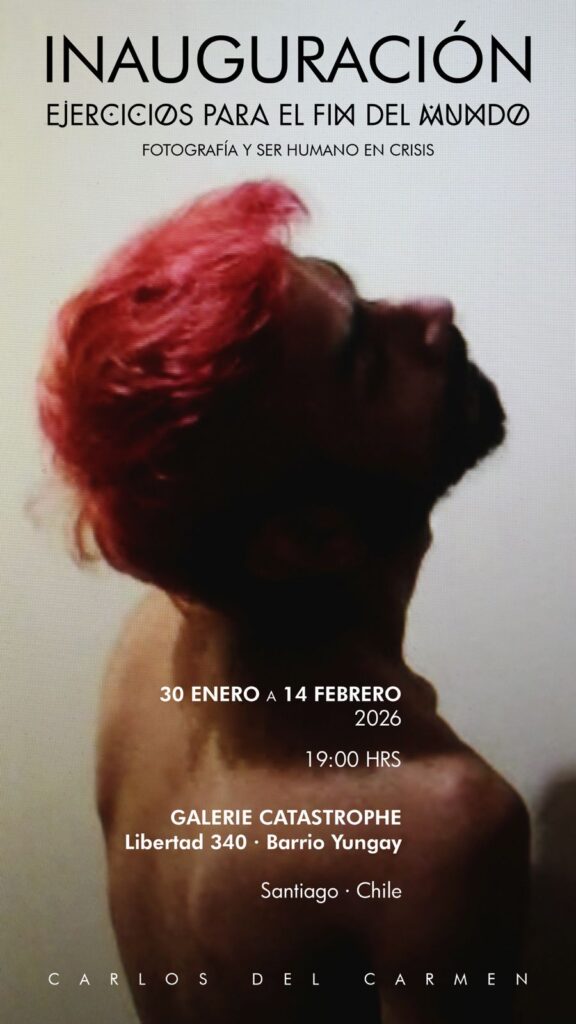 Entre el 30 de enero y el 14 de febrero de 2026, en la Galerie Catastrophe administrada por el dramaturgo italiano Peter Hubert se presenta Ejercicios para el fin del mundo. Fotografía y ser humano en crisis, exposición del artista Carlos del Carmen, que se exhibe por primera vez de manera íntegra. La inauguración se realizará el viernes 30 de enero a las 19:00 horas en Avenida Libertad 340, Barrio Yungay, Santiago. La entrada es liberada.