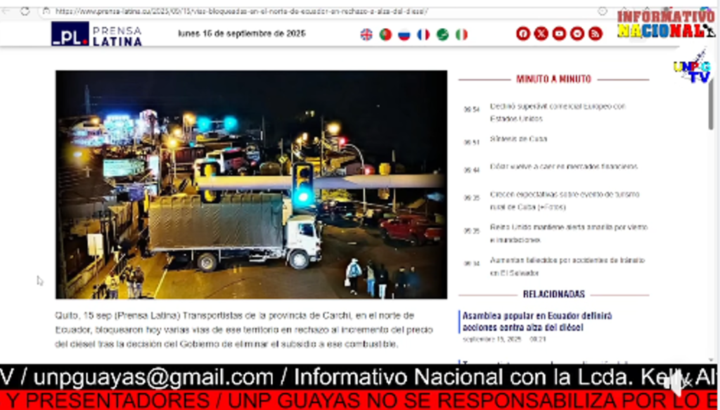 Programa: Informativo Nacional 15/09/2025 Unp Guayas / UNP-G.tv / Lcda. Kelly Alvear Lozano, MSc.