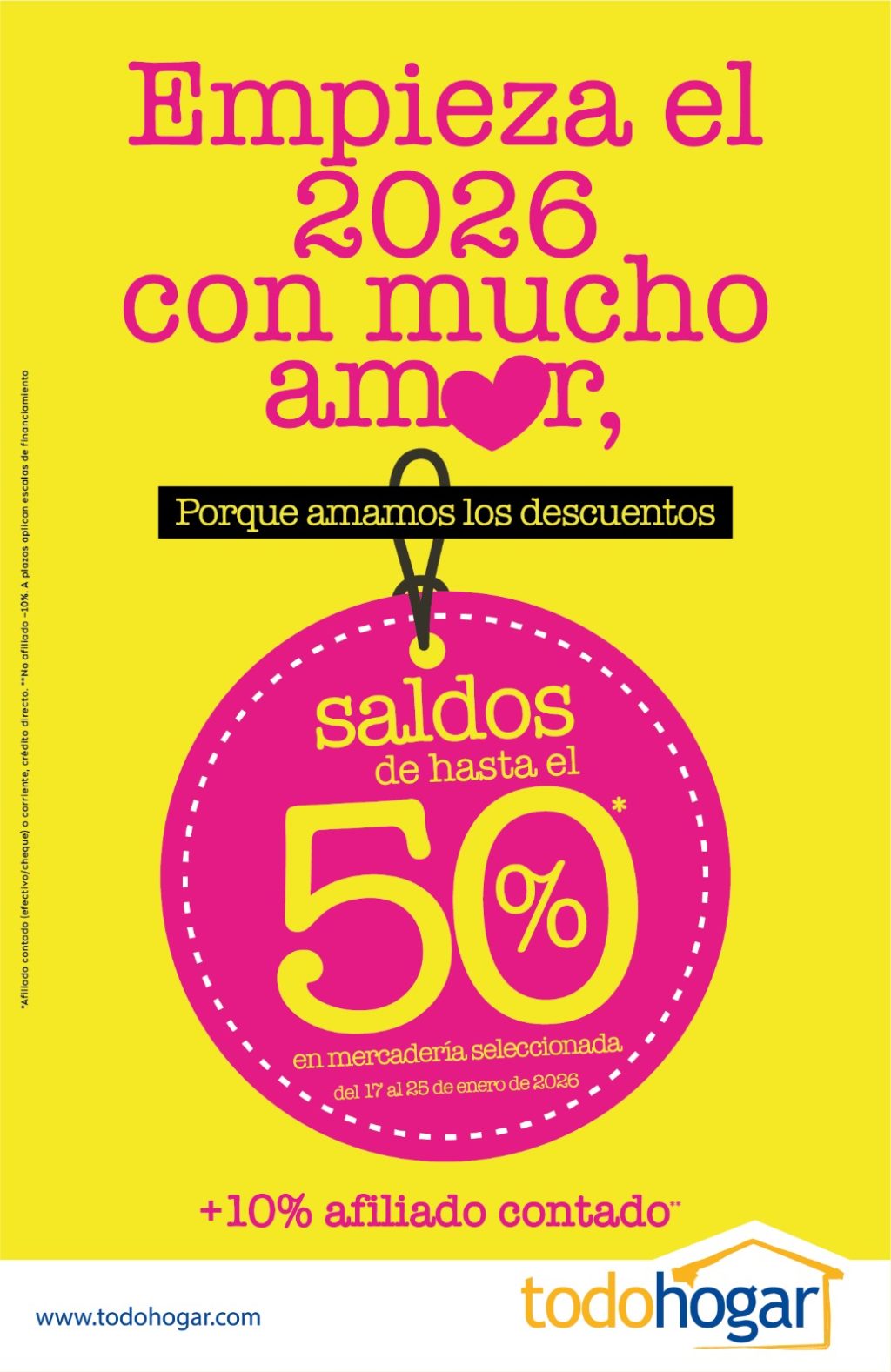 Todohogar presenta “Amamos los descuentos”, una nueva promoción con la que inicia el 2026, dirigida a consumidores que buscan renovar su hogar aprovechando importantes beneficios. La promoción contempla saldos de hasta el 50% de descuento en mercadería seleccionada, además de un 10% adicional por pagos al contado.